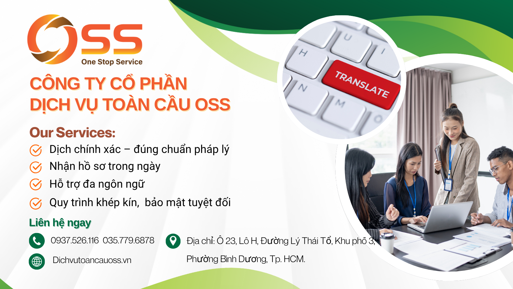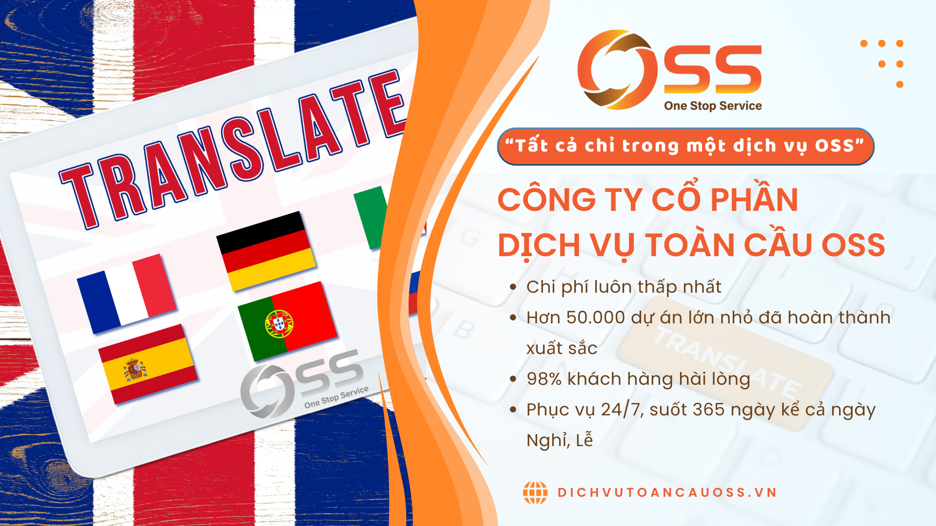 Dịch vụ toàn cầu OSS tuân thủ tiêu chuẩn ISO 9001 và vượt qua tiêu chuẩn ISO 17100, tiêu chuẩn Quốc tế về Dịch vụ Dịch thuật.