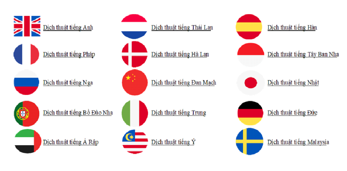 Đội ngũ biên dịch viên của chúng tôi thành thạo nhiều ngôn ngữ như: