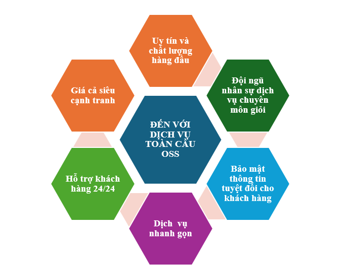 Dịch vụ Toàn cầu Oss chúng tôi tự tin rằng với đội ngũ cộng sự chuyên nghiệp gồm nhiều chuyên gia giỏi, tận tâm, nhiều năm kinh nghiệm trong các lĩnh vực khác nhau và hợp tác chặt chẽ với một số cộng tác, luật sư đồng nghiệp có uy tín trong và ngoài nước sẽ đáp ứng tốt nhất các yêu cầu của quý khách hàng, giúp khách hàng tối ưu chi phí doanh nghiệp, tăng hiệu quả trong hoạt động quản lý, kinh doanh để phát triển doanh nghiệp một cách lớn mạnh nhất.